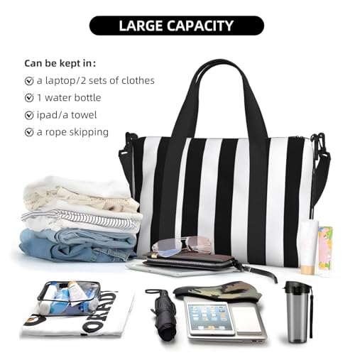 Travel Duffel Bag for Men Gym Bag, Black & White Stripe Luggage Bag with Shoulder Strap, Large Gym Tote Bag for Women, Weekender Overnight Bag, Foldable Carry on Bag for Airplane