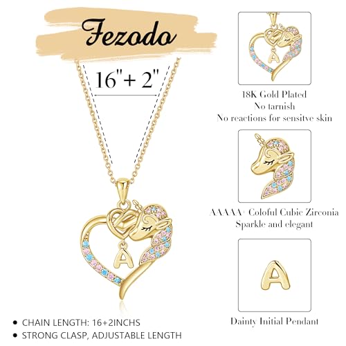 Unicorn Necklaces for Teen Girls Kids - Colorful CZ 18K Gold Plated Heart Initial Necklaces for Women Gold Jewelry Birthday Unicorn Gifts for Girls 6-8 Women