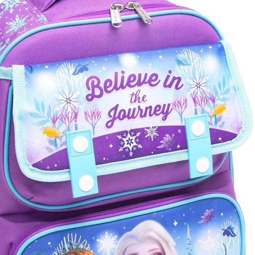 Disney 16" Frozen Backpack for Girls - Bundle with Elsa and Anna Elementary School Bag with Front Pockets Plus Stickers, Water Bottle, More | Frozen Backpack for Kids