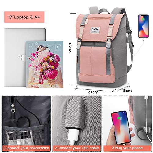 17 Inch Women Backpack School Bags for Teen Girls,College Student Bookbag Computer Backpack with USB Charging Port