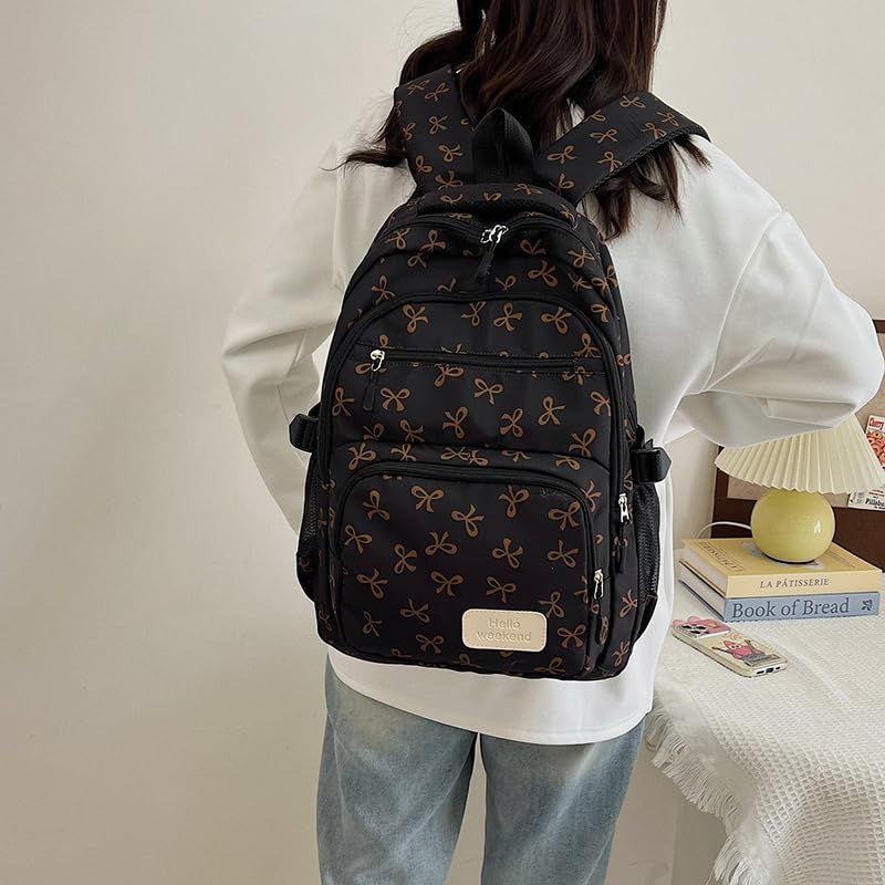 sizzling ! Cute Backpack With Lunch Box Teens Kawaii Bow Backpack (Black)