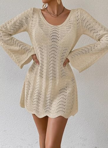 sizzling ! Womens Swimsuit Cover Up Long Sleeve Crochet Bathing Suit Mesh Backless Cover Ups Summer Beach Vacation Outfits 2025