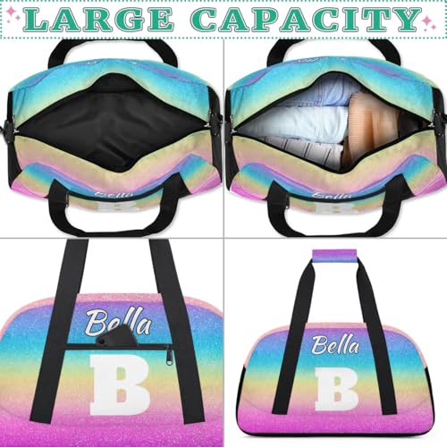 Personalized Initial Travel Duffel Bag for Women Men, Custom Name Workout Sports Tote Gym Bag Weekender Overnight Carry On Bag, Rainbow Glitter