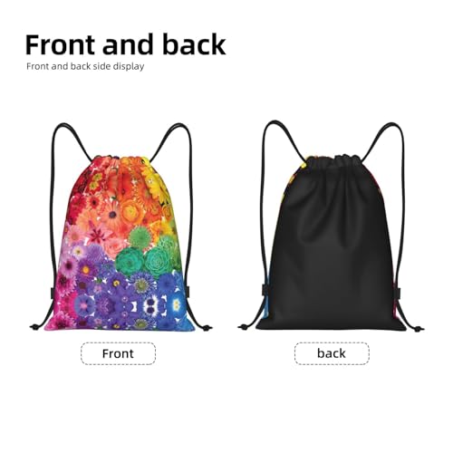 • Adjustable Design:Rainbow Flowers Print Drawstring Design, convenient To Open And Close. You Can Also Freely Adjust The Length Of The Shoulder Strap By Tying A Knot Under The Rope. Can Be Folded In Parallel For Easy Portability. Protect Stored Items From Getting Wet Easily.The Drawstring Backpack Can Be Folded Into Its Inner Pocket, And Stored In The Car, Handbag, Your Pockets, terrific For Taking With You Anywhere You Want.