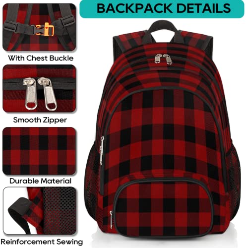 sizzling ! Red Black Buffalo Plaid Bookbag School Backpack Teens Girls Boys Schoolbag Shoulder Computer Hiking Gym Travel Casual Travel Daypack