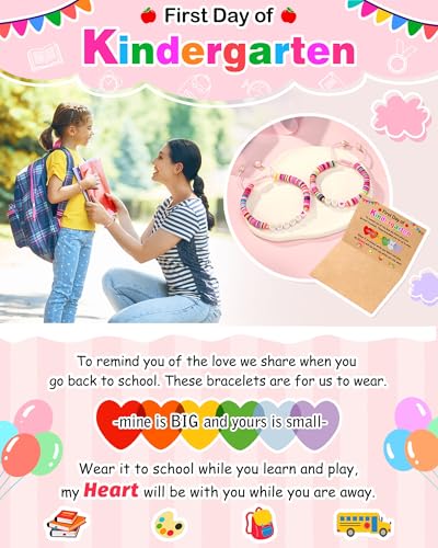 • 【First Day of Kindergarten Bracelet】Give the bracelet to your daughter to celebrate her first day of school. Wearing these bracelets and letting her know that "Your heart is always with her and you fancy her forever. Be brave to face challenges and start fresh adventures."