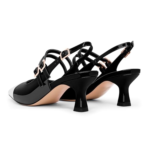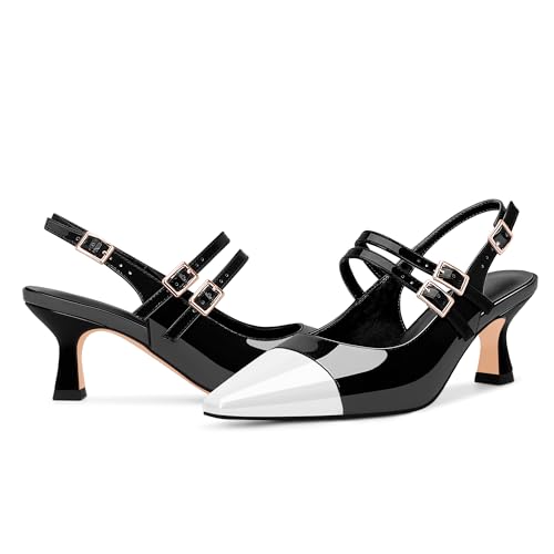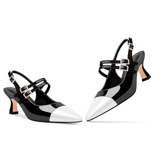 Why Choose 100FIXEO Women's Mid Heel Slingback Pumps Double Buckle Strap Two-Tone Patent Leather Dress Shoes?
