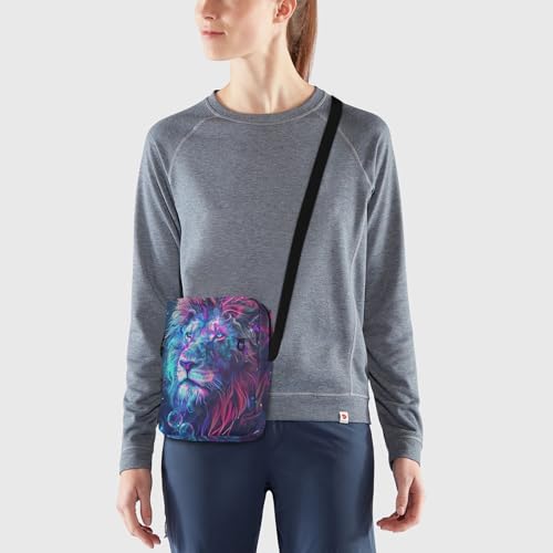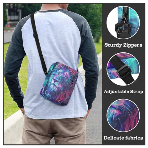 Crossbody Bag Purple Galaxy Lion Messenger Bag for Women Men Purse Shoulder Bag Satchel Bag with Adjustable Strap 214B6110
