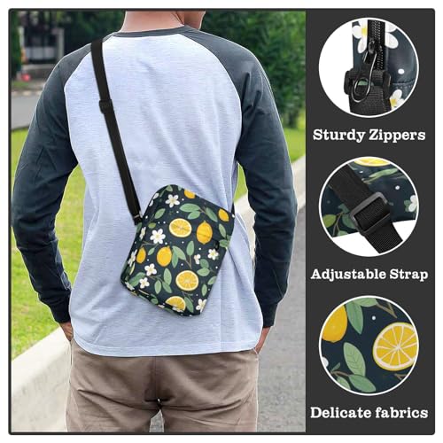 Crossbody Bag Lemon Flower Summer Messenger Bag for Women Men Purse Shoulder Bag Satchel Bag with Adjustable Strap 214A9421