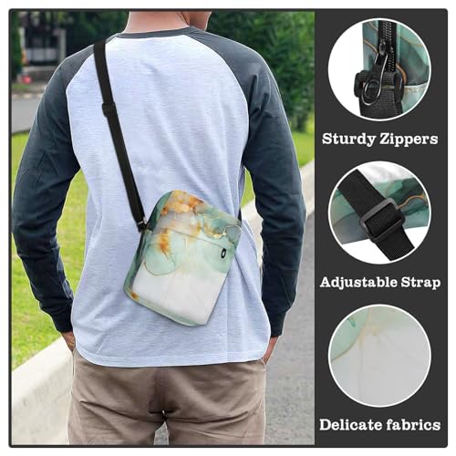 Crossbody Bag Green Gold White Marble Messenger Bag for Women Men Purse Shoulder Bag Satchel Bag with Adjustable Strap 214B4046
