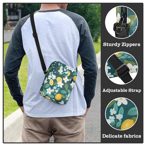 Crossbody Bag Lemon Flower Summer Messenger Bag for Women Men Purse Shoulder Bag Satchel Bag with Adjustable Strap 214A9354
