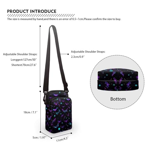 💓MATERIAL - 2 layer mini crossbody bag made of excellent polyester fabric, which equipped with smooth and sturdy zipper, soft, plush, enough room to make removal and insertion easy. The Cross Body Bag Suitable for Over 3 Years Old Kids.💓SIZE - 7.1 H * 1.97 W * 4.3 L Inches, fits up to 6.7in cellphone. Lightweight compact crossbody bag of 0.26 lb with adjustable and removable crossbody shoulder straps, from 27.6 inch to 50 inch, adjust according to needs.💓MULTIPURPOSE - Crossbody Bag: single mini/small shoulder bag/side bag backpack/messenger satchel bag; Waist Fanny Pack: fanny pack/chest bag/neck purse bag; Add-on Pouch: hang on backpack with the snap ring.💓FEATURE - Small but compact crossbody bag is perfect for carrying a standard single fold wallet, smartphone, school office supplies, credit cards, keys, passport, music player and headphones, 6 Fire Tablet, lipstick, notebook, pens and so on.💓OCCASIONS - Unisex kids adults crossbody bag perfect for school, college, work, business, everyday carrying, walking the dog around the park, outdoor, sports, biking, hiking, camping, cycling, shopping, journey, running, concerts, climbing, festivals, taking a day trip or for daily use. Perfect for everyday use. High quality materials and excellent craftsmanship ensure long-lasting durability.