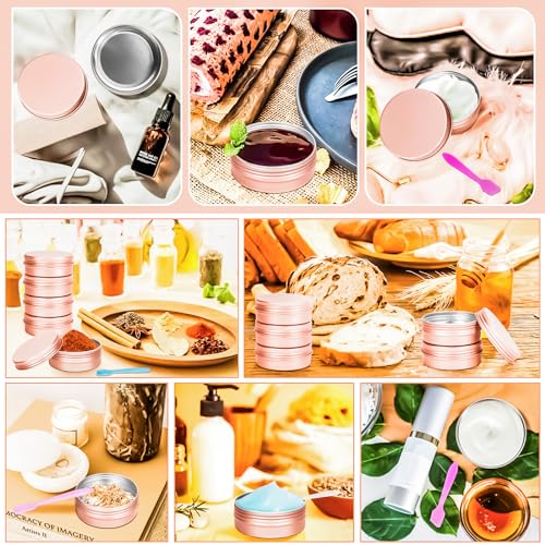 Material: AluminumBrand: MotBachColor: Rose GoldPattern: SolidCapacity: 2 ouncesMaterial and Size: These metal tins with lids are made of high-quality aluminum material, durable and sturdy. Each aluminum container measures about 2.7 inches/68mm in diameter and 1 inches/25mm in height, ideal size for holding salve, lip balm, and cream. Each package includes 16 Pcs of tin containers bottle.Screw Lid: The small metal tins with lids feature with screw lid design, which make it easy for you to open the aluminum jar and close it tightly. The lids are smooth and no sharp edges, cushy to hold without scratching your hand.Wide Application: These aluminum tin containers are suitable for various items, like lip balms, lip glosses, creams, cosmetics, eye shadows, lotions, body butte, scrubs, acrylic powder, salves, nail accessories and more. Perfect size for you to take them in your pocket, handbag, backpack and luggage, small size allows them to go anywhere.Easy to DIY: These screw top round tin cans can be applied for candle making, balm DIY, cosmetic packaging storage and more, you can DIY them as gift for weddings, baby shower, birthday, parties, anniversary.Practical: These metal containers with lids are also ideal for holding leaf teas, spices, cooking oils, paints, charms, beads and any small accessories you want. A wide-used and practical tool for your daily life. Perfect for everyday use. premium materials and excellent craftsmanship ensure long-lasting durability.