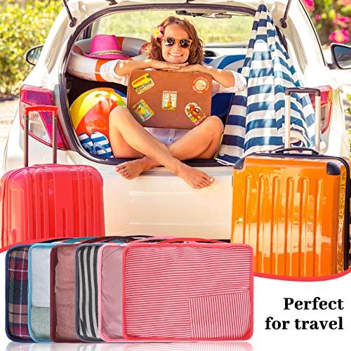 • Ample for Your Various Needs: the package comes with 12 pieces of packing cubes for suitcases, available in gray, wine red, watermelon red, navy, pink and gray blue color, 2 pieces per color, sufficient in quantity and complete in combination to meet your daily using, replacing and sharing demands