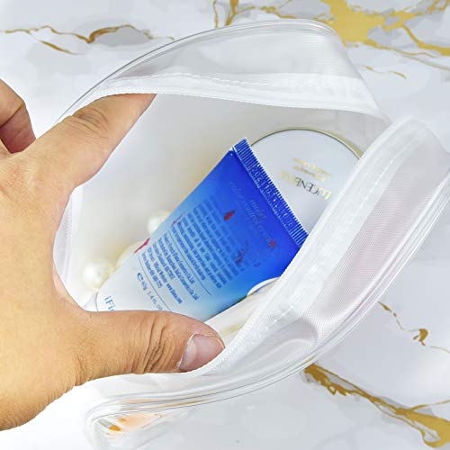 sizzling ! 5 Packs Clear Cosmetics Bag TSA Approved, Wobe PVC Zippered Toiletry Carry Pouch Portable Makeup Bag for Vacation Travel, Bathroom and Organizing Waterproof Makeup Vinyl Case (Medium, White)