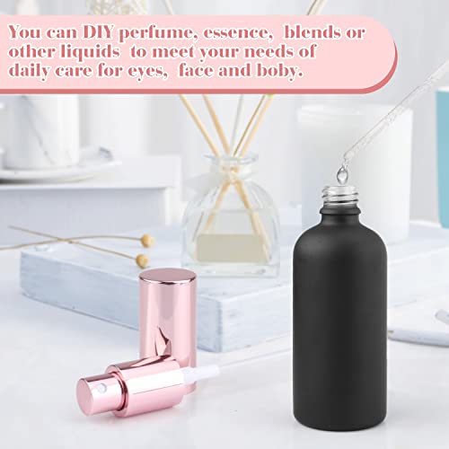 6 Pack 3.4 Oz Black Frosted Glass Spray Bottles,Empty Perfume Fine Mist Atomizer,Rose-Golden Pump Head Travel Liquid Holder Containers for Cologne,Essential Oils,Body Sprays-Funnel&Pipette