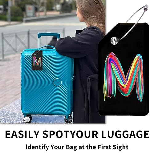 sizzling ! 4 Pack Initial Luggage Tag for Suitcase, Colored Letter Silicone Bag Tags Identifiers Privacy Cover ID Label with solid Steel Loop for Women Men Kids Girls Travel, Letter M