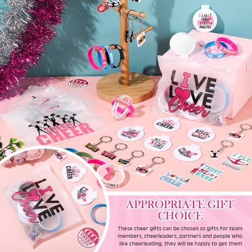121 Pcs Cheerleader Gifts Kit 30 Zipper Portable Cheer Makeup Bag 30 Keychain Wristband Mirror 1 Bag Waterproof Cheer Stickers for Women Girls Cheerleader Teammates