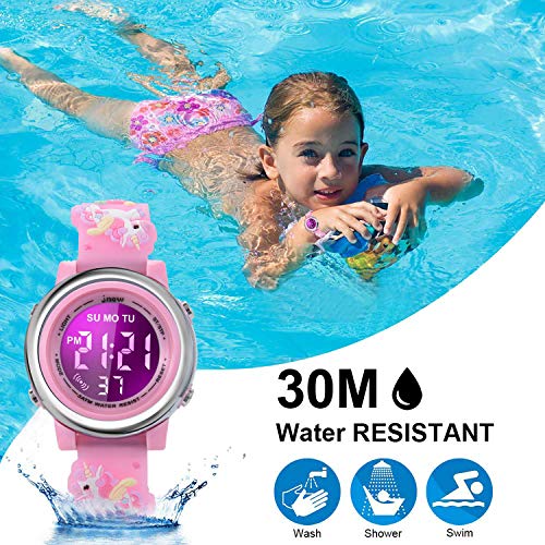 cofuo Girls Digital Watch Age 3-12 for Gifts, 3D Cartoon Waterproof Sports Outdoor LED Electrical Watches with Luminous Alarm Stopwatch Toddler Wristwatch