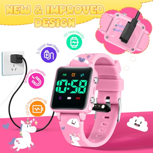 sizzling ! Potty Training Watch for Toddlers, Upgrade Magnetic Charging Potty Reminder with Music/Vibration/Colorful Lights Countdown, Cute Pattern Silicone Strap, Waterproof Kids Digital Watch, Gift for Kids