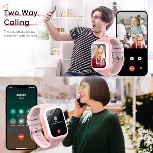 Wonlex 4G GPS Smartwatch for Kids, 1.78" AMOLED Touchscreen Phone Watch with SIM Card, Video Calls, Voice Chat, SOS, Camera, Music, Pedometer, Game, Birthday Gift for Girls Boys Ages 8-15(Pink)