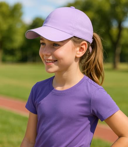 Girls Criss Cross Ponytail Hat Reflective Baseball Cap Kids Lightweight speedy Drying Outdoor Mesh Sports Hat Age 7-12