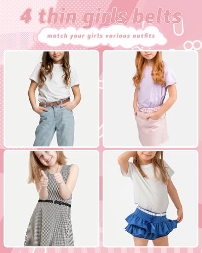 Kajeer Kids Belt for Girls,4 Pcs robust PU Leather Belt Metal Buckle Heart Circle Hole Youth Toddler Belt for Uniform Casual