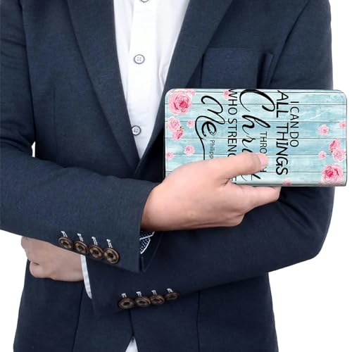 Brand: BEOTIWADColor: Bible Verses Philippians 4-13Material: Faux LeatherSpecial Feature: BifoldLining Description: Faux LeatherOrganized Storage: BEOTIWAD's long wallet with multiple pockets, making it easy to go out or shop with a credit card wallet with a phone pocket without carrying a heavy backpackPerfect Size: BEOTIWAD's foldable mobile wallet Measuring 7.36*9.94*0.6 inches /18.7*10*1.5 cm when folded, slim and lightweight, perfect for holding in your hand or pocket. Easy to carry to banks, clubs, workplaces and supermarketsDouble Magnetic Buckle Design: Our leather foldable wallet uses a unique RFID shielding material to protect any unauthorized scanning, prevent the disclosure of valuable personal information in your credit card and driver's license, double magnetic buckle firmly,prevent internal things from falling,, will not accidentally open, can be used with confidence.Materials: BEOTIWAD This long vintage purse checkbook in PU leather is designed for both men and women to be durable and the sturdy stitching doesn't have to worry about splittingGood Idea: An elegant and sophisticated leather long wallet in a variety of patterns is the perfect gift for your beloved man's birthday, Valentine's Day, Christmas and anniversaries.If you have any questions about our products, please feel free to contact us, we will do our best to serve you. Perfect for everyday use. excellent materials and excellent craftsmanship ensure long-lasting durability.