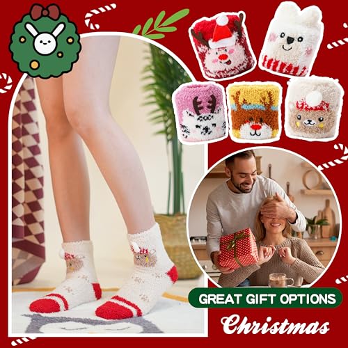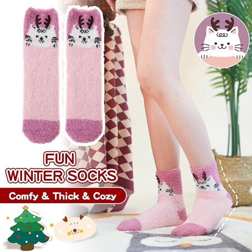 Sandsuced Fuzzy Fluffy comfortable Slipper Socks for Women Winter Cozy Thick Cute Crew Sleep Comfy Fleece Christmas Socks 5 Pairs