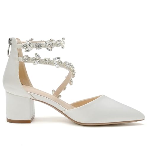 Why Choose Women's Closed Pointed Toe Pumps Wedding Low Block Heel with Rhinestone Ankle Strap Chunky Heels Prom Evening Party Dress Shoes for Bride?