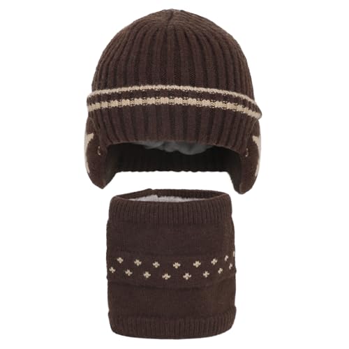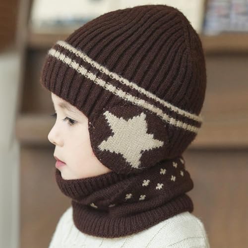 Kids Winter Knitted Beanie Hat Circle Scarf Set gentle thermal Fleece-lined Earflaps Skull Cap for Boys Girls 3-8 Years