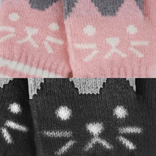 PURFUN Kids Cartoon Cat Full Finger Gloves Girls Boys Winter Thermal Skate Cycling Ski Knitted Gloves Mittens for 3-6 Yrs