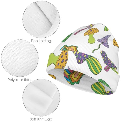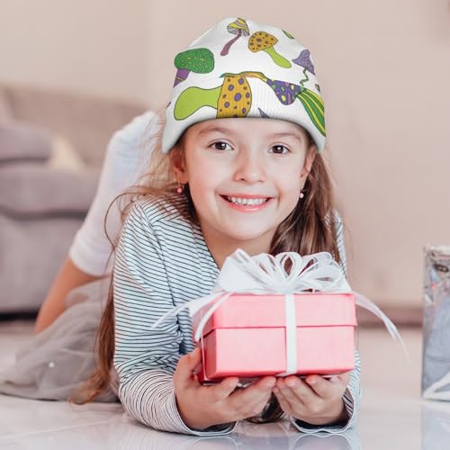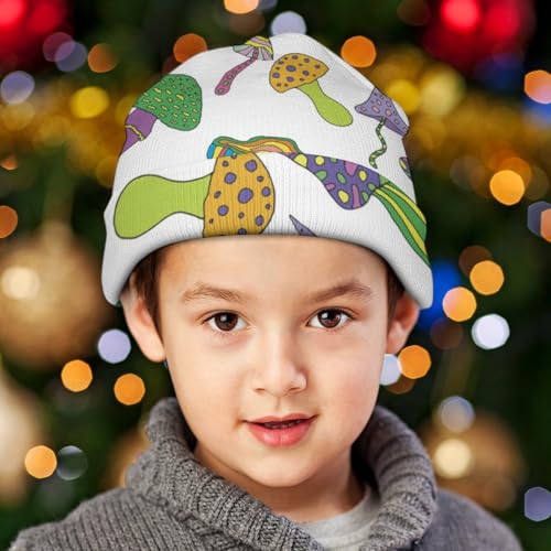 sizzling ! Trippy Art Mushroom Pattern Kids Beanie Hat for for Girls Boys Children Cap Winter Knitted Chemo Cancer Headwear Accessories Gifts Decoration Black