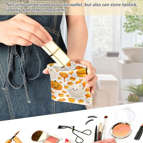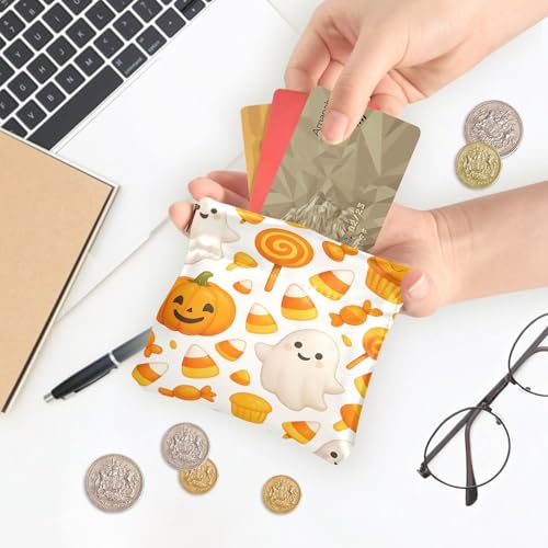 Cute Halloween Ghosts & Candy Squeeze Coin Purse, Leather Coin Purse, Mini Wallet, Compact and Portable, Unisex