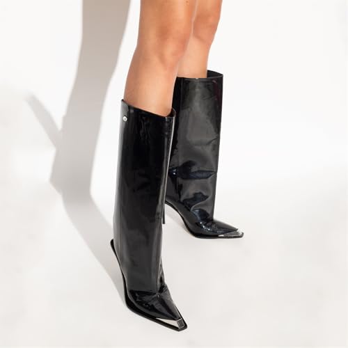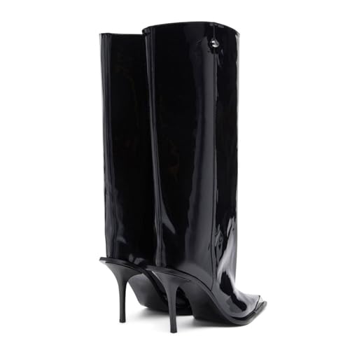 • 【plain Special Design】: These metal pointed toe knee-high boots have a sophisticated silhouette. Crafted from premium black patent leather with a glossy finish. Simple solid color design for a contemporary aesthetic.