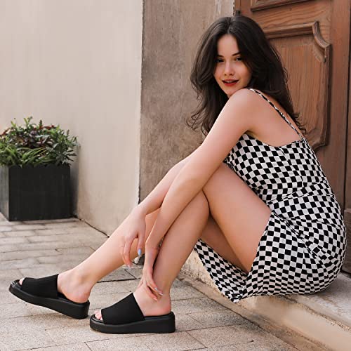 Leevar Nude White Black Platform Wedges Sandals for Women - gentle Memory Foam Padded Backless Slip On Comfy Square Open Toe Mules Summer Casual Flatform Platform Wedge Sandals Slides for Women