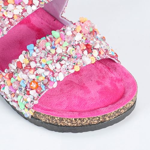sizzling ! 2025 latest Shiny Cork Women's Sandals Double Belt Household Flat Slippers Shiny Diamond Button plush Shoes