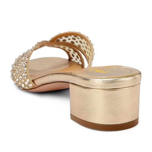 • [Rhinestone Slide Sandals] Ideal for everyday wear and breathable lining for extra comfort. This open toe mule sandal features the luxurious crystal-encrusted mesh upper, low block heel and slip on design, a must-have item for every woman's wardrobe.