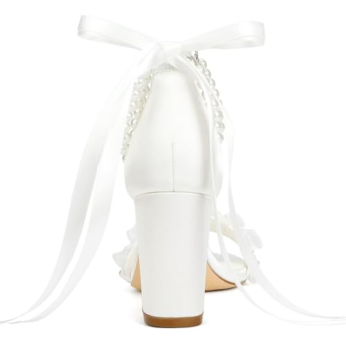 Pearl Wedding Shoes for Bride Block Heel Wedding Sandals Open Toe Bridal Shoes