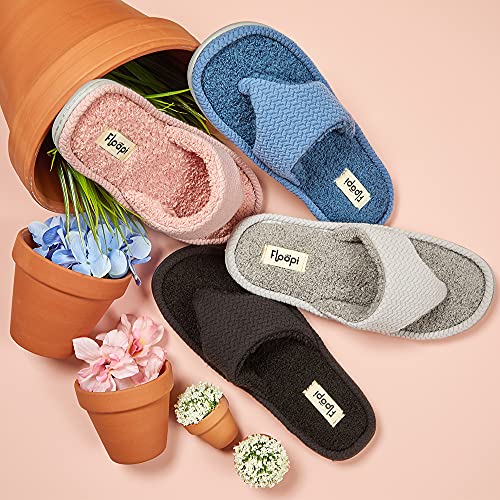 • COZY FLIP FLOP SLIPPERS - Introducing the Floopi velvety Knit Thong Slipper for women the superb spring/summer house shoe. The flip flop design comes with a super soft knit upper, french terry insole/lining, rubber outsole and memory foam padding which makes for a cloud-like footbed.