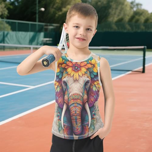 More information about Boys Tank Top Shirts Flower Elephant Traditional Animal Sleeveless T-Shirts Crew Neck for Kids Clothing Children