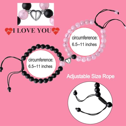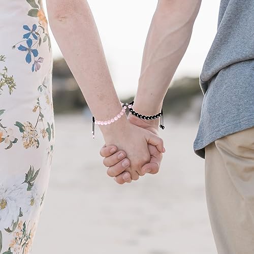 Material: StoneMetal type: Stainless SteelClasp type: Fish HookChain type: Box Chain, Rope Chain, Cord Chain, Bead ChainGem type: No gemstoneItem type name: BraceletsCouples Bracelets: This Couples Bracelets for allowing those apart to feel connected.Having this pair of long distance couple bracelet,feeling together no matter where you are & no matter how far with your lovers. Distance and time apart from someone can be hard, but so sweet when knowing you are missing each other at all times.Couples Gifts Jewelry: The powerful matching bracelets with an adjustable hand-woven cord can be freely adjusted to your size. 2 exquisite couple bracelets and 2 message cards are packed in a sweet gift box.Size: black matte agate beads & rose quartz bead. Adjustable Rope bracelets Inner Perimeter: 6.5--11 inch. Stone Bead Size: 8mm.Natural Stone Bracelet: The outstanding 8mm black matte agate stone and healing crystal couple bracelet for you to wear on any occasion. Wearing a natural stone bracelets for a long time can help relieve anxiety and stress.Package: Couples bracelets are packed in exquisite velvet bags and gift box. If you have any questions about matching bracelets you bought, please contact us, we will provide you with professional after-sales service and solutions within 24 hours. Perfect for everyday use. premium materials and excellent craftsmanship ensure long-lasting durability.