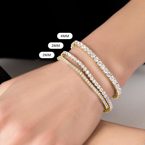 • PREMIUM WATERPROOF CRAFTSMANSHIP: Each waterproof bracelet features secure 4-prong settings that showcase the AAAAA-grade CZ stones while ensuring they stay firmly in place. Meticulously crafted with 18K white gold or gold plating over hypoallergenic metal that's nickel, lead, and cadmium no-cost. Available in 2mm, 3mm, or 4mm widths providing options from subtle elegance to statement sparkle.
