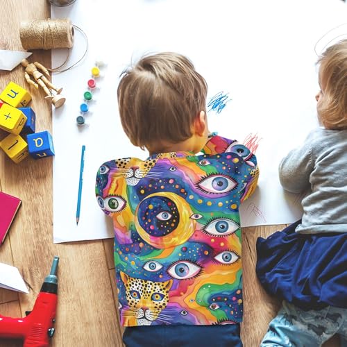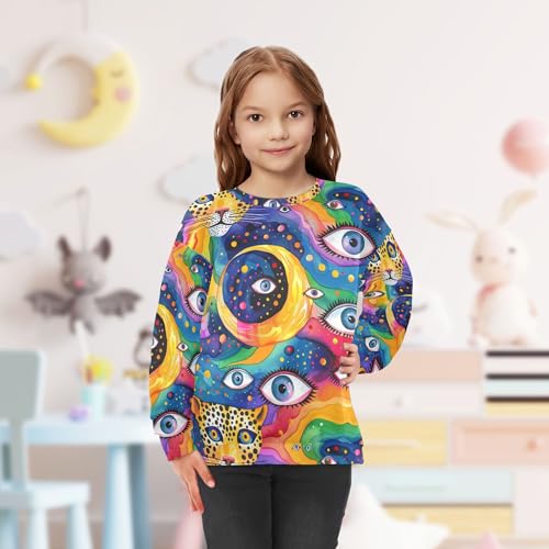 JUNZAN Weird Leopard Evil Eyes Ball on Rainbows Little Kids Sweatshirt Hoodie Fleece Fall Tops Shirts Camping 4T
