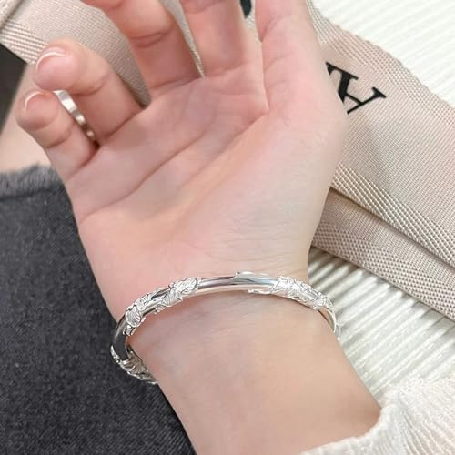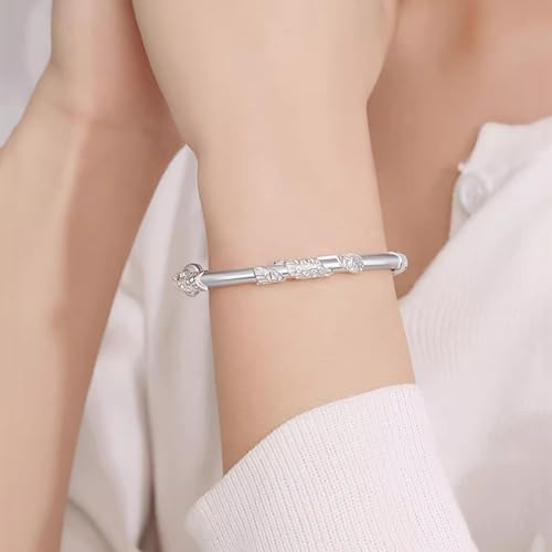 Solid 925 Sterling Silver Bracelets for Women plain Adjustable Bangle Bracelet