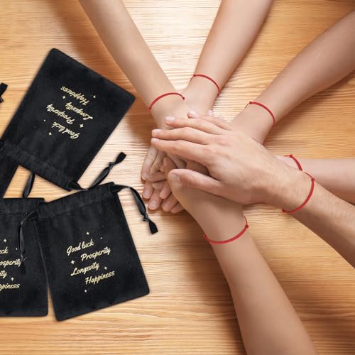 Metal type: As shownClasp type: No clasp typeChain type: Cord ChainGem type: As shownQuality Material Donned with Vibrant Colors: with the Kabbalah red string bracelet packed in a velvet bag, both the bracelet and bag showcase a stunning color combination; The vivacious red string of the bracelet offers a fresh and vibrant aura, while the luxurious black velvet bag demonstrates elegance and sophisticationAdjustable Size for a Comfortable Fit: the Kabbalah red string bracelet's size is designed to cater to a wide range of customers; With its maximum length adjustable to an extensive 10.63 inches/27 cm, it ensures a comfortable fit that meets the exclusive needs of every individualConveniently Sized Velvet Jewelry Bags: each Kabbalah red string bracelet comes with a velvet jewelry bag; Sized at 3.94 x 3.15 inches/10 x 8 cm, this elegantly designed bag is a perfect storage solution for your precious bracelet, ensuring safekeeping and easy portabilityPackage that Echoes Generosity: the Kabbalah red string bracelet package includes not just one, but three red handmade bracelets and corresponding velvet jewelry bags; This generous package allows you to share the bracelets as significant gifts with your cherished groupHandmade Bracelets Symbolizing Luck and Blessing: handcrafted under meticulous attention, the Kabbalah red string bracelet is more than an accessory; It serves as a symbol of good luck and blessings, amplifying the positive around you Perfect for everyday use. excellent materials and excellent craftsmanship ensure long-lasting durability.