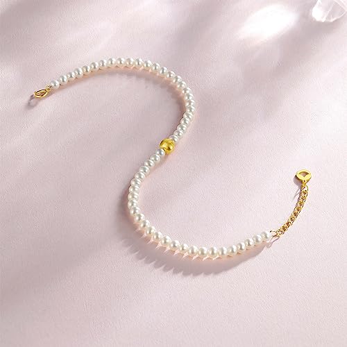 18kt Gold Bracelet for Women, 18K Gold Freshwater Pearl Bead Bracelet Dainty Jewelry Fashion Yellow Gold Link Bracelet for Girlfriends