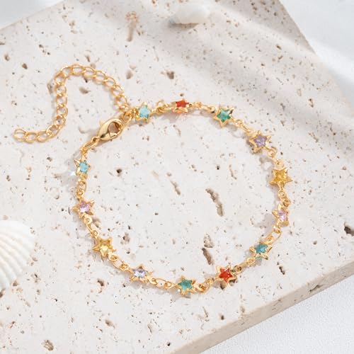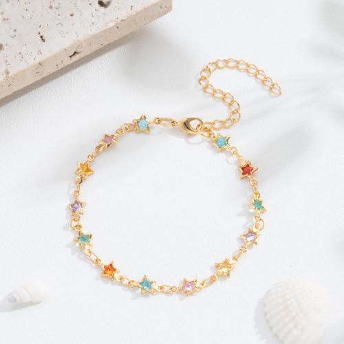 More information about Sanyaa Star Bracelet 18K Gold Plated Multi Stone Crystal Star Bracelet for Women (Colorful)