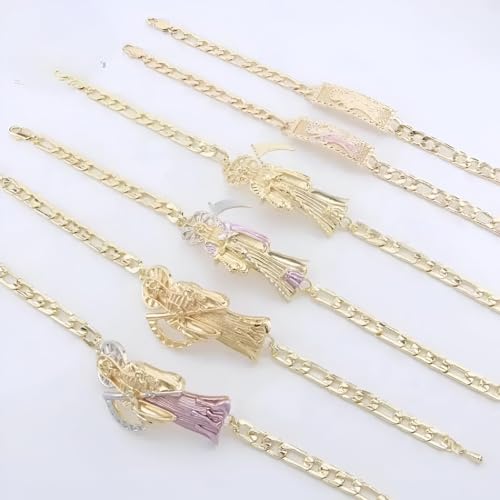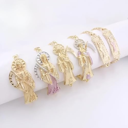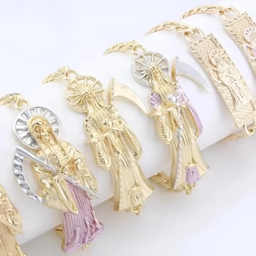 Material: Yellow GoldMetal type: Yellow GoldClasp type: No ClaspGem type: No gemstoneEmbrace the power and symbolism of Santa Muerte with this intricately designed Santa Muerte bracelet. The bracelet features a striking Santa Muerte pendant, making it a bold statement piece. Perfect for those who admire La Santa Muerte, this memento mori bracelet serves as a constant reminder of lifeβs fragility and the importance of living in the moment.Honor Santa Muerte with this charming Santa Muerte bracelet. It incorporates a detailed Santa Muerte rosary design, perfect for those who connect deeply with La Santa Muerte. The pendant included in this bracelet symbolizes the balance between life and death, making it a powerful memento mori bracelet and a meaningful piece of jewelry.Show your devotion to Santa Muerte with this stunning Santa Muerte bracelet, featuring an elegant Santa Muerte pendant. The bracelet is designed to capture the essence of La Santa Muerte, offering both style and spiritual significance. Whether worn as a Santa Muerte chain or a standalone accessory, this memento mori bracelet is a timeless addition to your collection.This Santa Muerte bracelet is a powerful representation of your faith in La Santa Muerte. Adorned with a finely crafted Santa Muerte pendant, this bracelet doubles as a Santa Muerte chain, making it versatile for various occasions. The memento mori bracelet design serves as a reminder to live with intention and respect for the inevitable.Wear the symbol of La Santa Muerte with pride in this beautifully crafted Santa Muerte bracelet. Featuring a striking Santa Muerte pendant and a meticulously designed Santa Muerte rosary, this memento mori bracelet brings together both faith and fashion. Perfect as a Santa Muerte chain or as a standalone piece, it adds depth and meaning to any outfit. Perfect for everyday use. excellent materials and excellent craftsmanship ensure long-lasting durability.