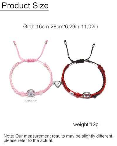Material: StringMetal type: ZincGem type: No gemstoneSpider Matching Bracelets:You will receive a pairs of spider matching bracelets, designed as a perfect set for couples, best friends, or loved ones. Crafted from high-quality string rope and alloy charms, these spider matching bracelets are built to last while offering a lightweight, comfortable fit. The materials are carefully selected to be skin-friendly, making them suitable even for those with sensitive skin.Friendship Bracelets:These bracelets combine edgy and romantic aesthetics—featuring a black and pink spider string rope for a bold look and heart charm, sentimental touch. The contrasting colors and textures create a striking yet harmonious design, representing strength and love.Matching Bracelets for 2:Whether you prefer casual, edgy, or romantic styles, these spider matching bracelets effortlessly complement your look. Pair them with streetwear for a bold statement, or wear them with a chic outfit for a touch of charm. Ideal for date nights, concerts, travel, or everyday wear, they add a distinctive flair to any ensemble.Perfect Gift:These spider matching bracelets make a heartfelt gift for anniversaries, valentine’s day, birthdays, or just because. They’re a meaningful way to celebrate friendships, romantic relationships, or even self-love. Whether for your bestie, boyfriend, girlfriend, or a close friend, these bracelets convey thoughtfulness and connection—no occasion needed, just pure sentiment.Service:We provide supreme jewelry and lifelong friendly customer service. If you have any questions during the purchase, please don't hesitate to contact us, we will do our best to help you. Perfect for everyday use. High quality materials and excellent craftsmanship ensure long-lasting durability.